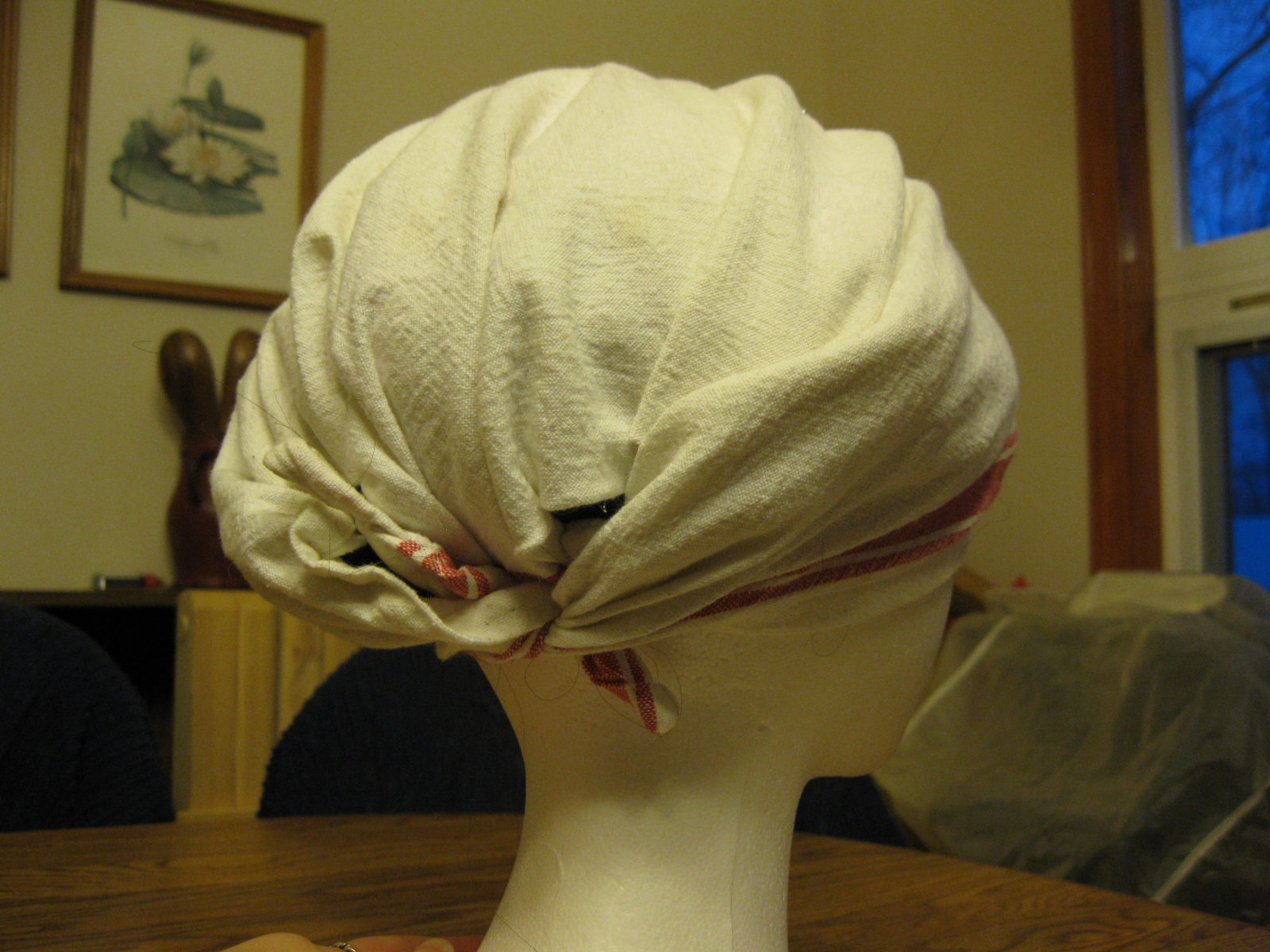 When you don't have the time to sew a fitted povoinik, you can tie a kerchief to resemble one.