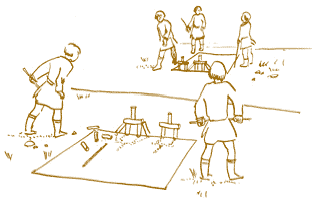 The modern version of gorodki was formalized with official rules in the 1920s. The rules I will present here are based on the modern rules. I do not know what the "period" rules would have been, and I strongly suspect that, since almost every Russian village had it's own name for the game, they all probably had their own versions of the game.