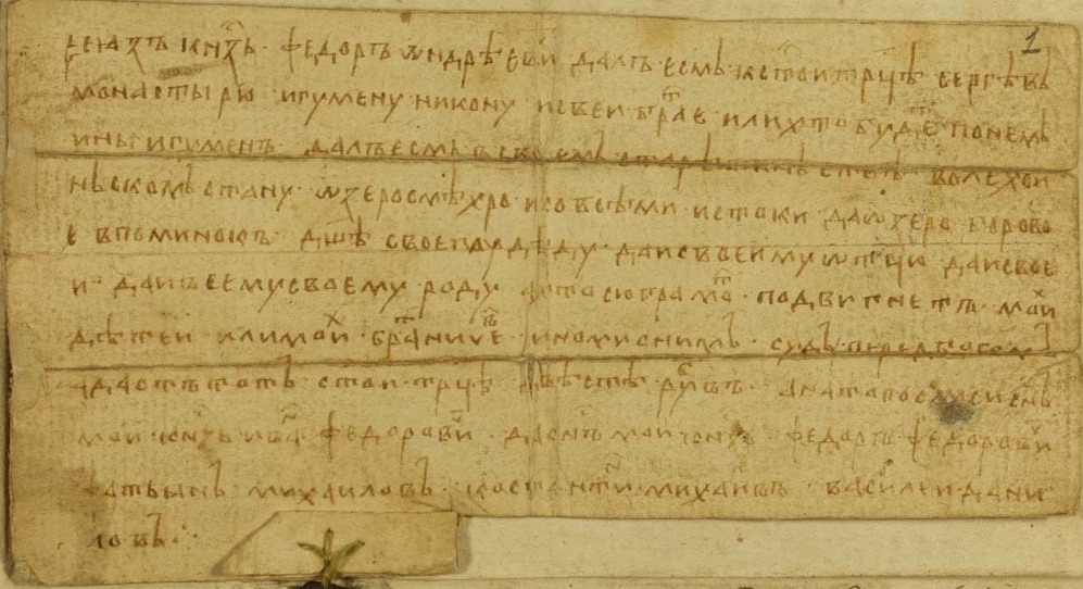 Late 14th Century Zhalovannaya Gramota of Fedor Andreevich to Igumen Kikon