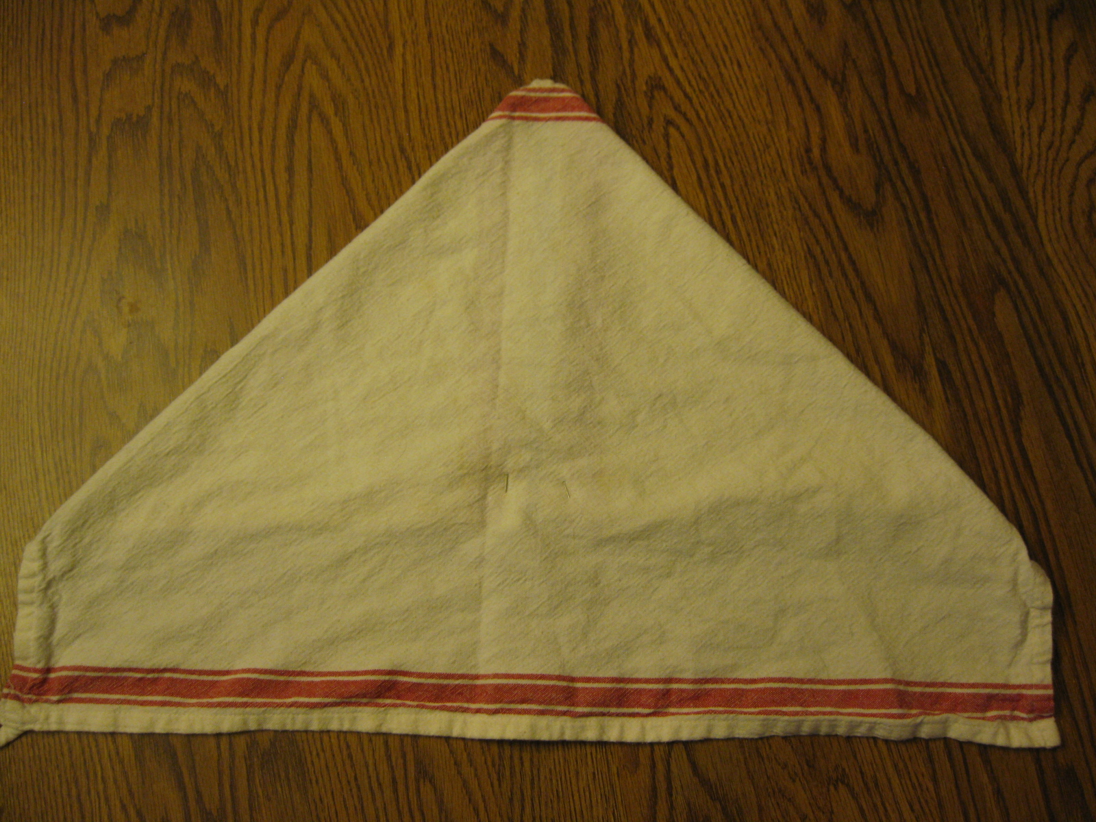The kerchief should be just big enough to tie around the head and it works best if it's folded into a semi-triangular shape.